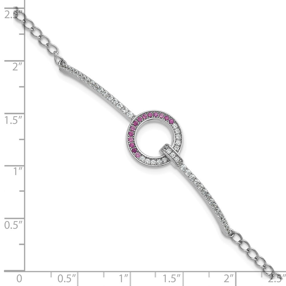Sterling Silver Rhodium-plated White and Red CZ Open Circle 7.25 inch Bracelet