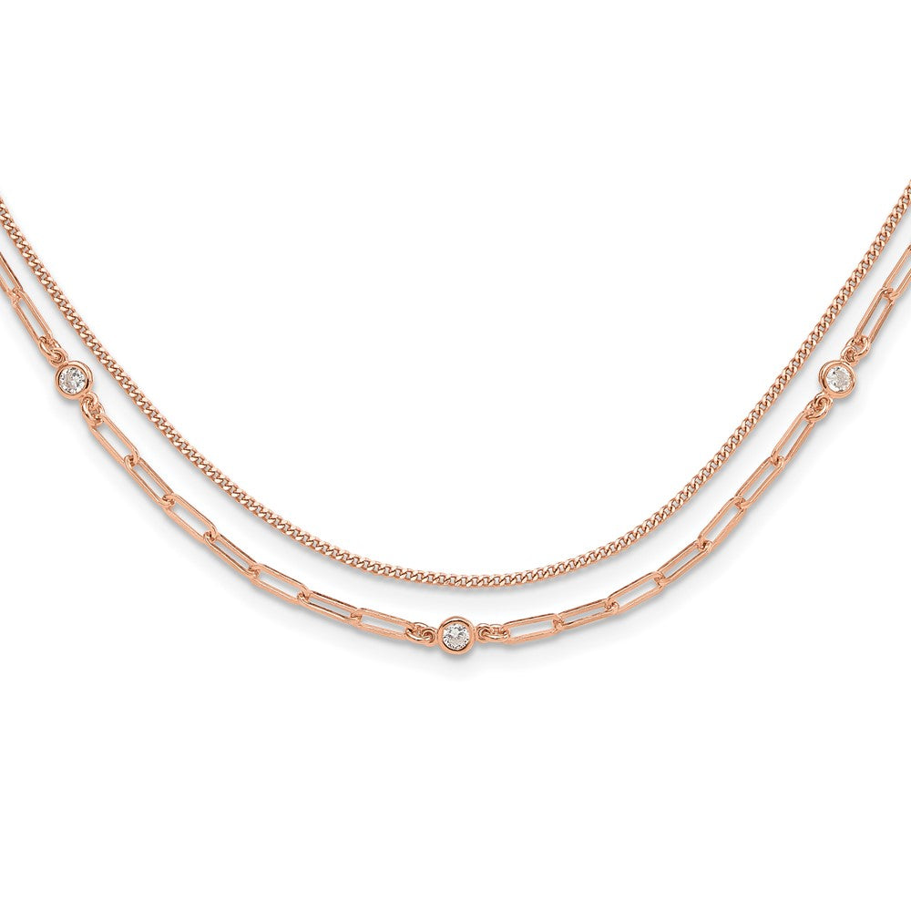 Sterling Silver Rose Gold-plated CZ 2 Strand 17in w/2in ext. Necklace