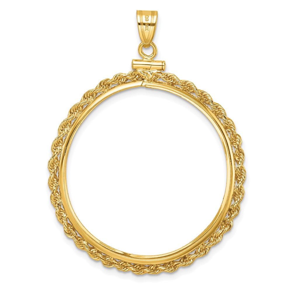 Wideband Distinguished Coin Jewelry 14k Polished Rope 32.0mm x 2.85mm Screw Top Coin Bezel Pendant